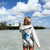 A laid-back hoodie inspired by classic 90s surf style. Made from soft grey pigment-washed fabric for that perfectly faded, vintage look. It features a bold hibiscus graphic on the front and a full front zipper for an easy, relaxed fit. Perfect for beach days, cool nights, and everyday wear.